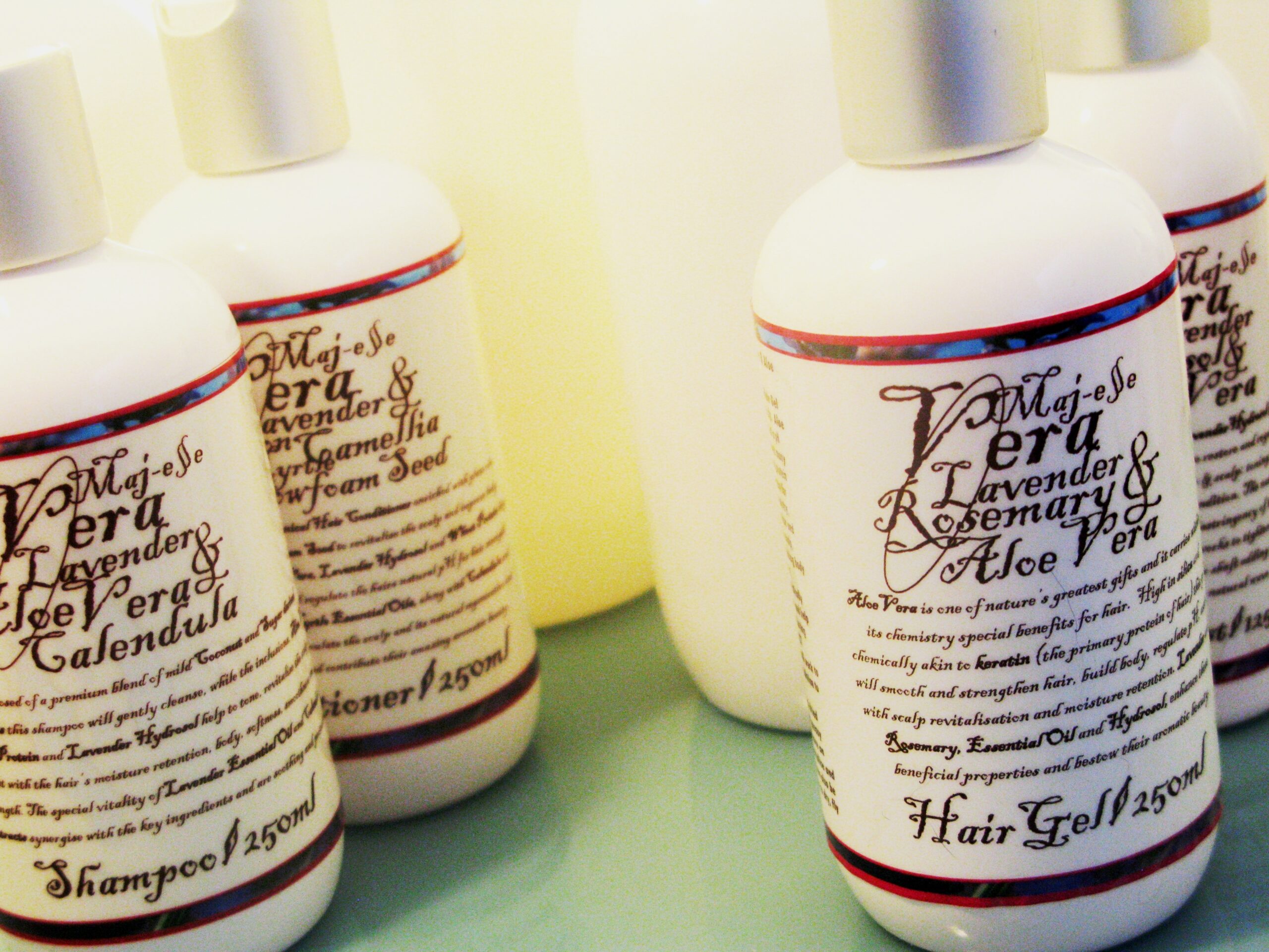 INGREDIENTS: Lavender Hydrosol (Lavandula angustifolia Bee & Avice Hill)• Rosemary Hydrosol (Rosmarinus officianalis CT/ verbenone)• (HC 90%) , Aloe Vera 200:1 (Aloe barabadensis)*, Guar Conditioner, Glycerine*, Guar Gum, Wheat Protein Extract, Olive Leaf Extract*, Olive Ester, Potassium Sorbate, Gluconolactone (and) Sodium Benzoate, Essential Oils: Lavender (Lavandula angustifolia v. Bee & Maillette•), Rosemary (Rosmarinus officianalis CT/ verbenone)• (EOC 1.0%) pH: 4.5 (*denotes Certified Organic) (• denotes product of SRL). Store with care: cool & airtight. Cease use if personal sensitivities arise